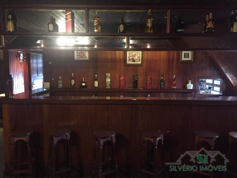 Pavimento superior com suíte de hóspedes, sauna, hidromassagem, salão em 4 ambientes (bar, jantar, jogos e TV) e varanda.