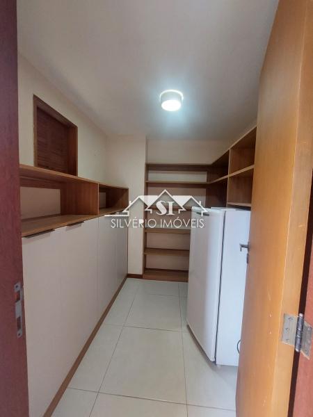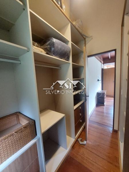 No segundo piso temos luminosa e confortável sala íntima envidraçada e com linda vista, uma ampla suíte com closet, também com armários planejados, e banheira, além de outro quarto e outro banheiro completo.