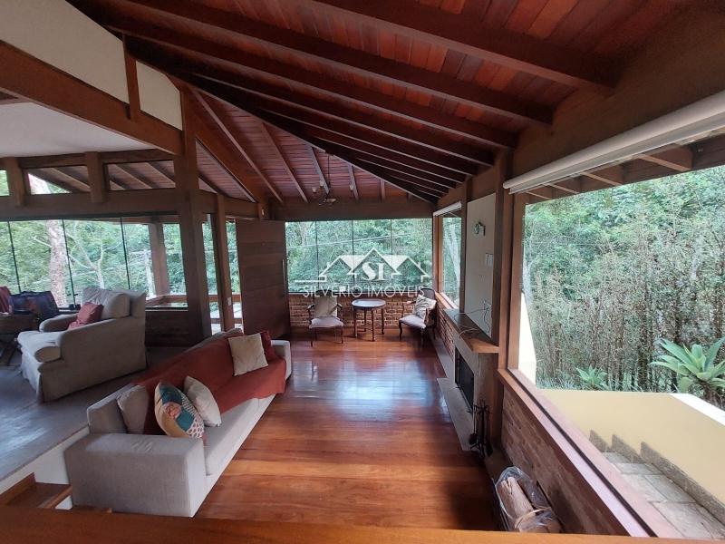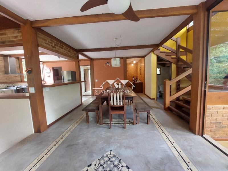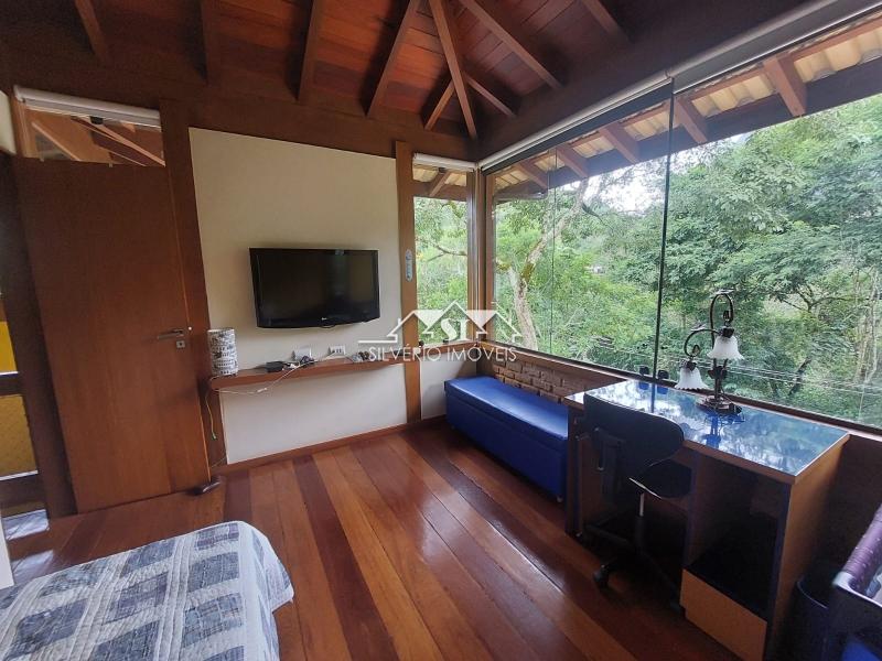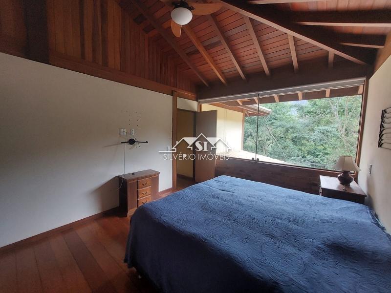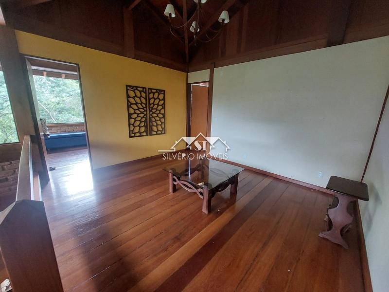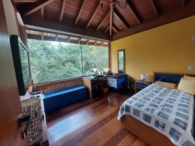 Todos os cômodos têm amplas janelas de vidro, o que faz a gente se sentir rodeado pela natureza. Alguns cômodos têm piso em tábuas corridas e teto catedral, tudo de excelente peroba rosa.