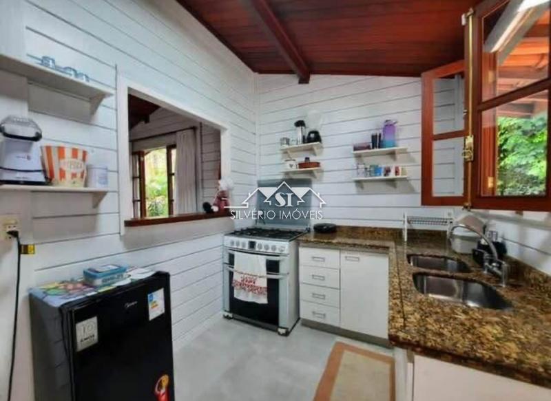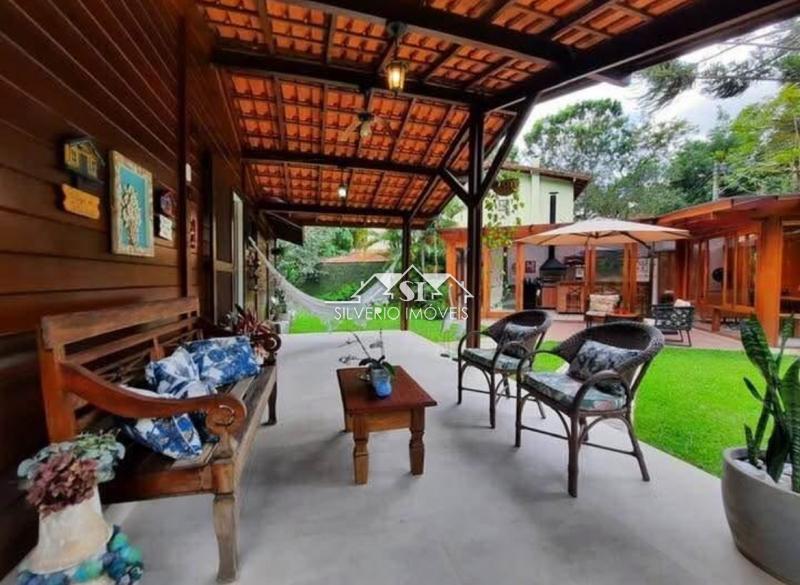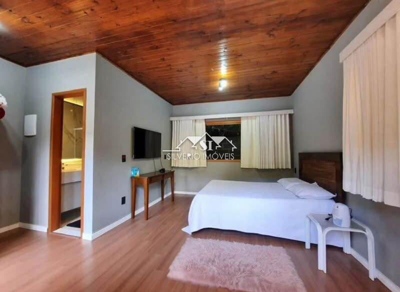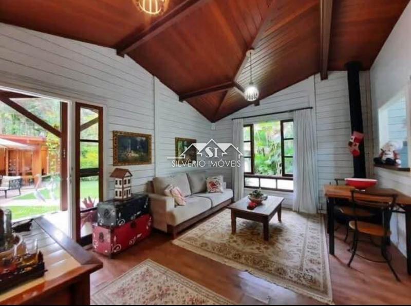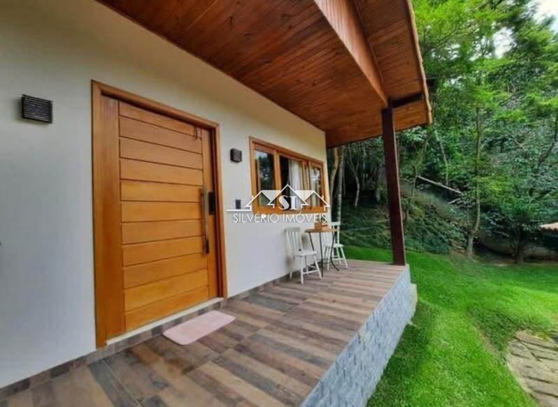 Casa linear em madeira, terreno 70% plano, composta de 02 quartos (sendo uma suíte com closet), banheiro social, sala com lareira e integrada com a cozinha americana, ampla varanda frontal e área de serviço nos fundos.
