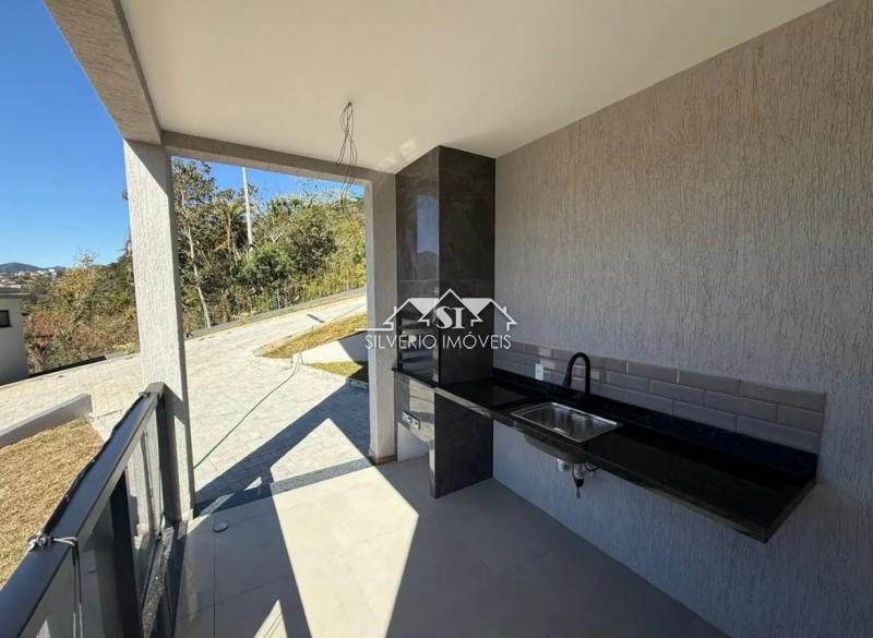 Características do Imóvel: Construção nova e moderna, Área gourmet com churrasqueira, Cozinha planejada e lavanderia, Quintal com gramado, Vista livre para montanhas, Sala com conceito aberto, Jardim e varanda, Local seguro, silencioso e com natureza exuberante. Próximo a comércios, escolas, igrejas e transporte público