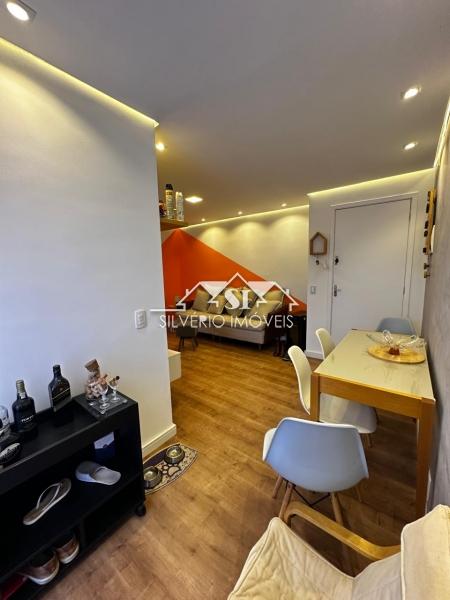 - Sala em 2 ambientes; 2 quartos; Banheiro social; Cozinha; Área de serviço; 1 vaga de garagem.